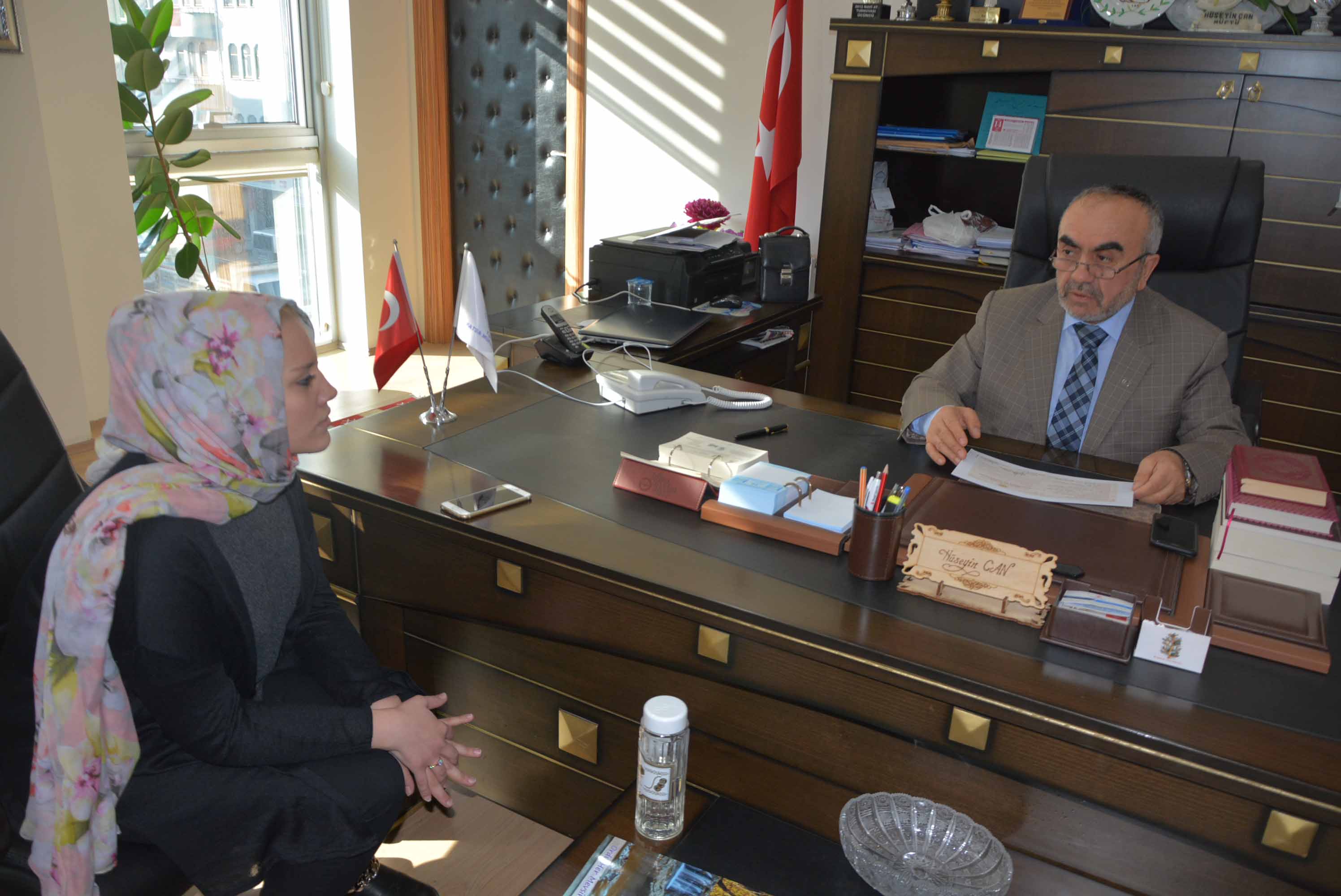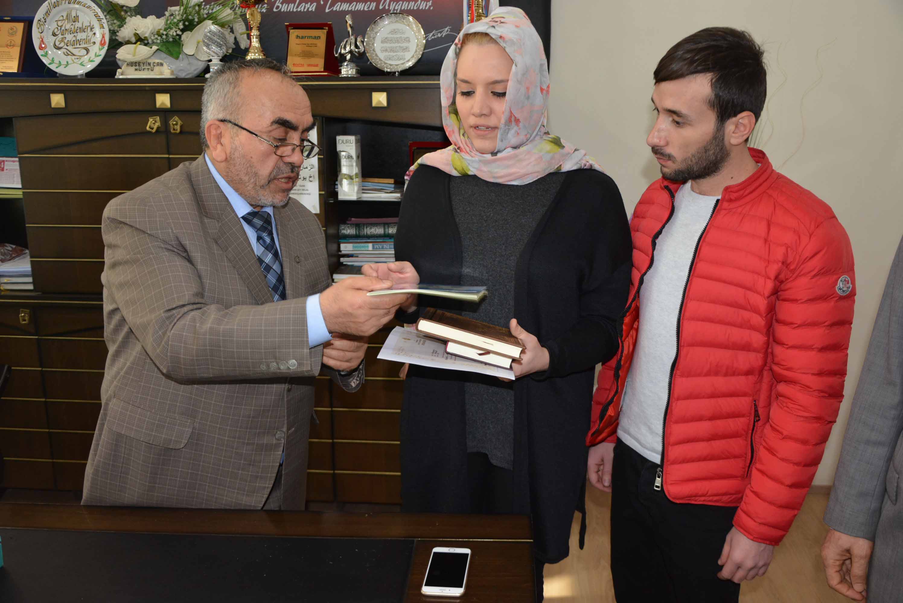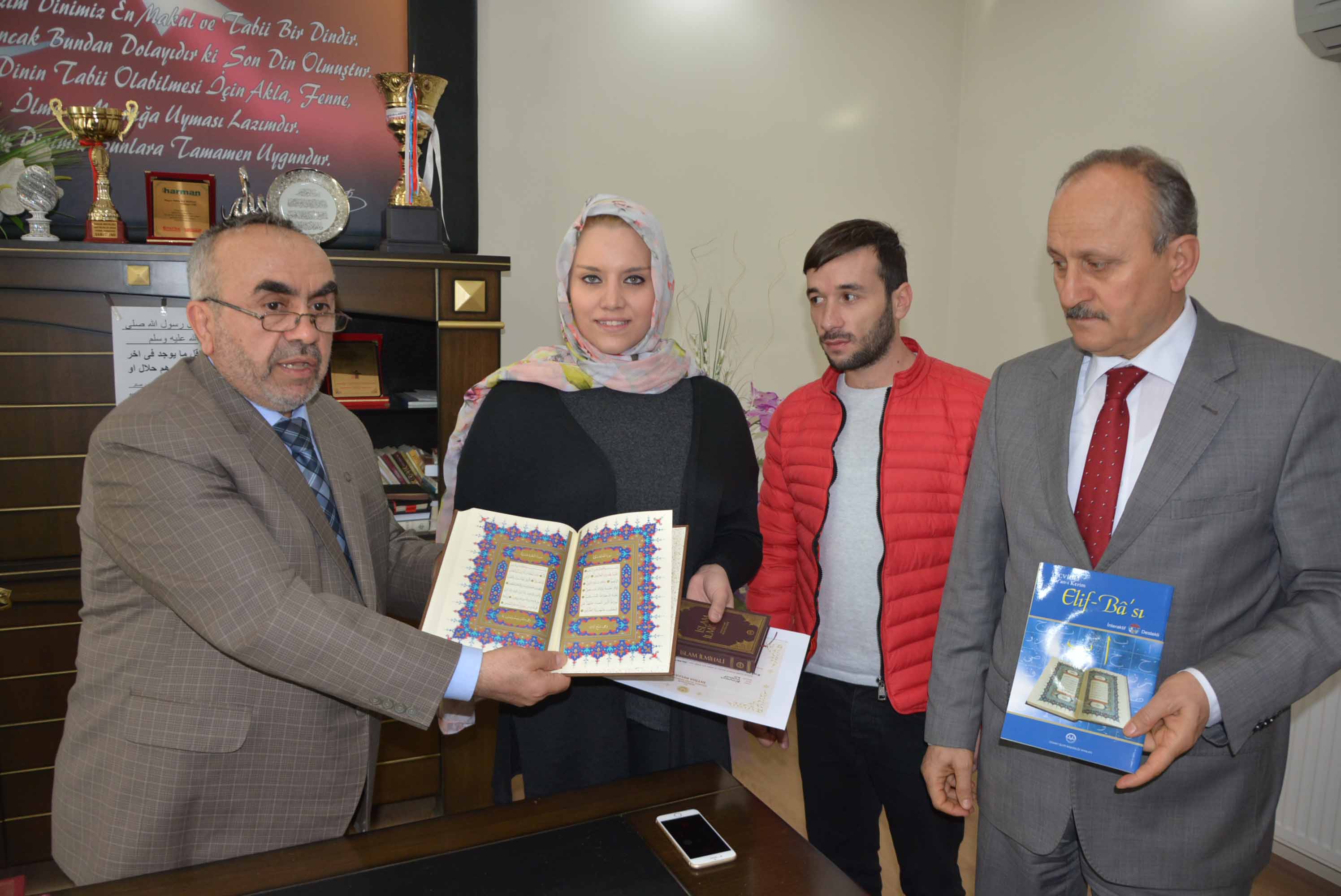 Müftü Can, Umbacdh’a ihtida belgesi ile Kur’an-ı Kerim ve İngilizce mealini hediye etti.