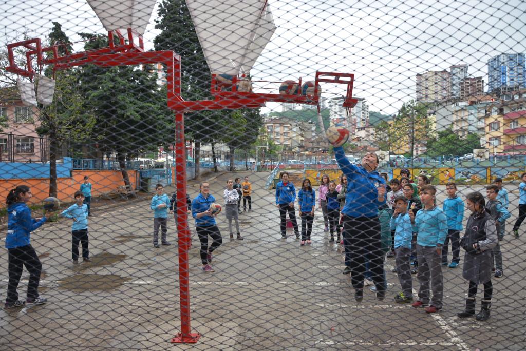 Smaçör ismi verilen ve Türkiye’de başka bir yerde bulunmayan makine sayesinde voleybolla ilgilenen öğrenciler, sıçrama ve smaç yeteneklerinin gelişmesine katkı sağlıyor.